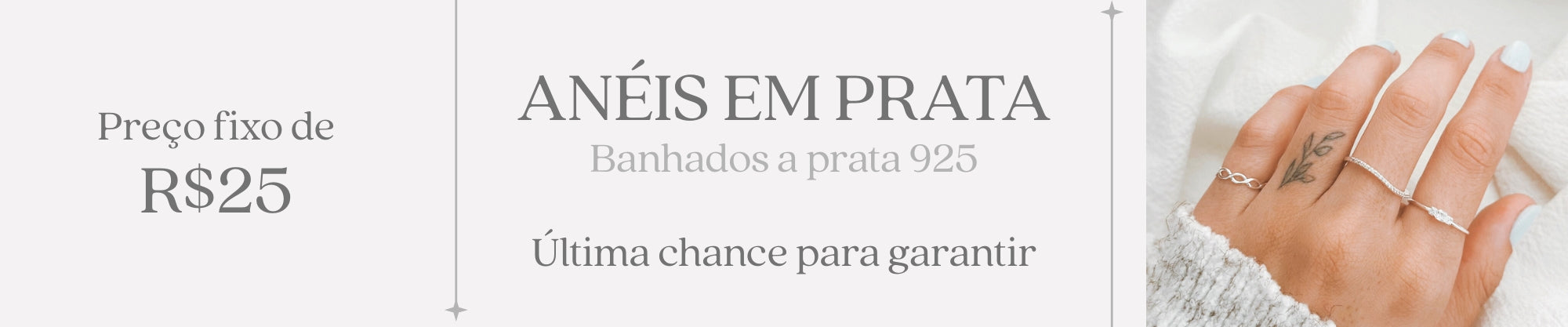 Anel Solitário Cravejado com Zircônia em Prata Semijoia Minimalista
