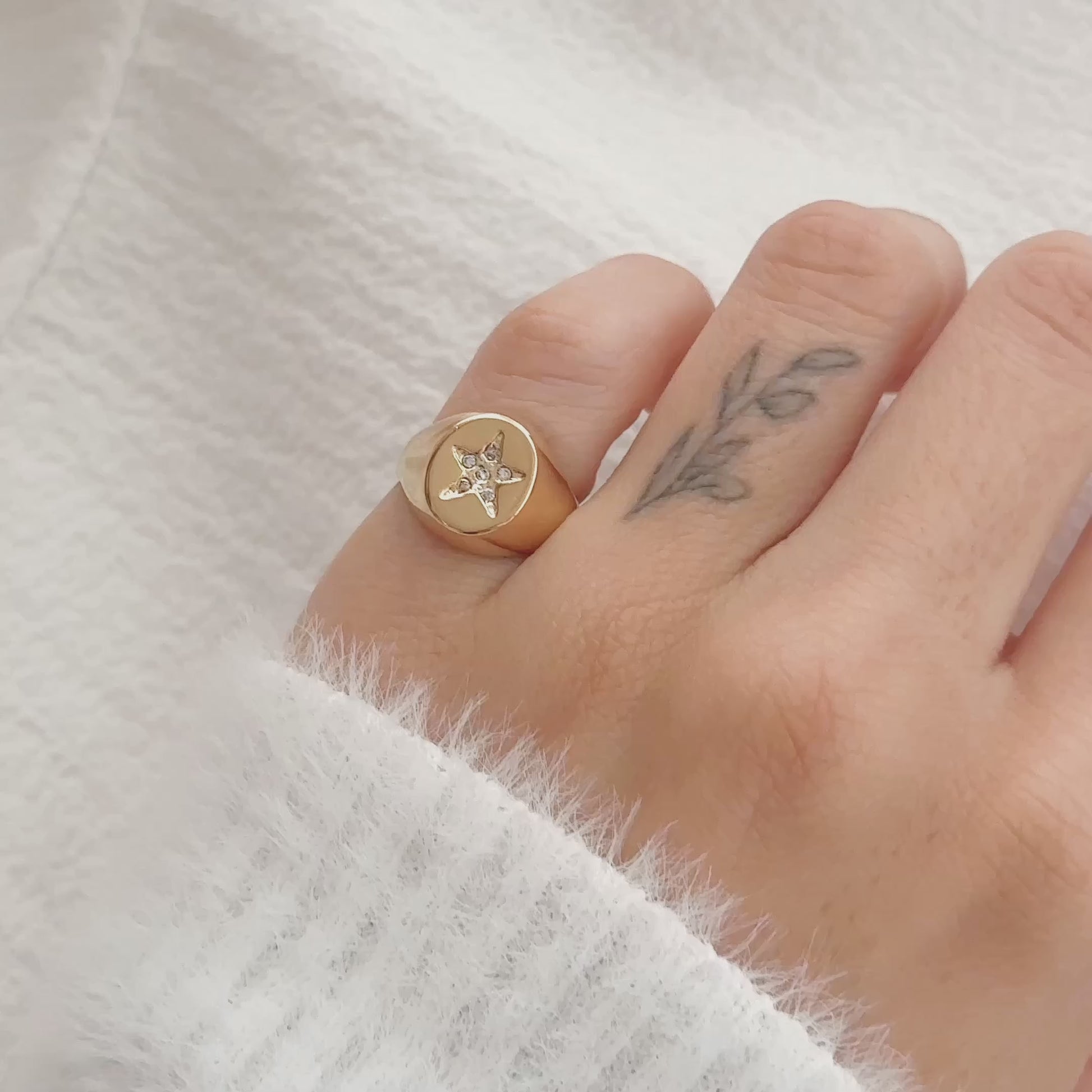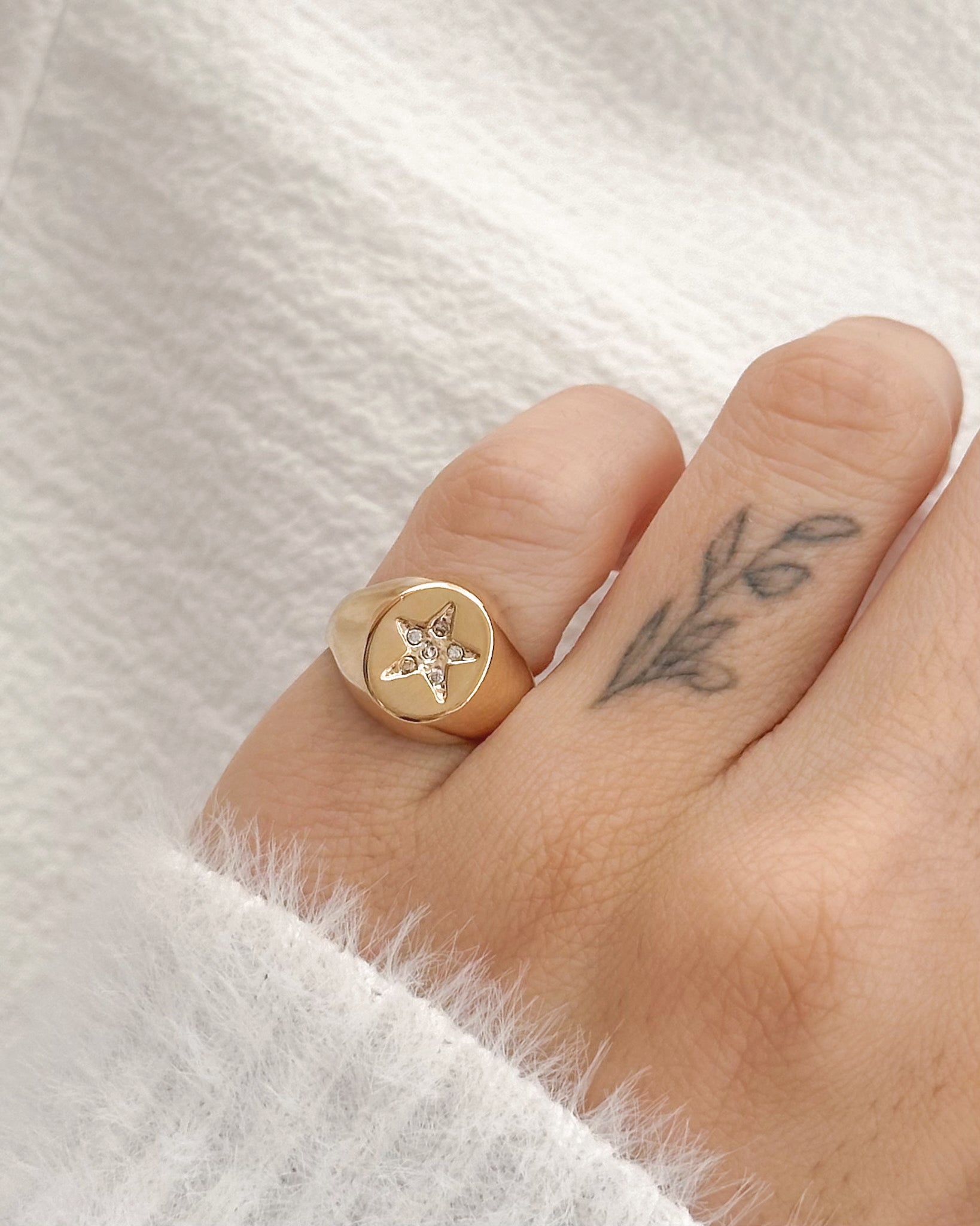 Anel Estrela com Zircônias Regulável em Ouro Semijoia Ajustável
