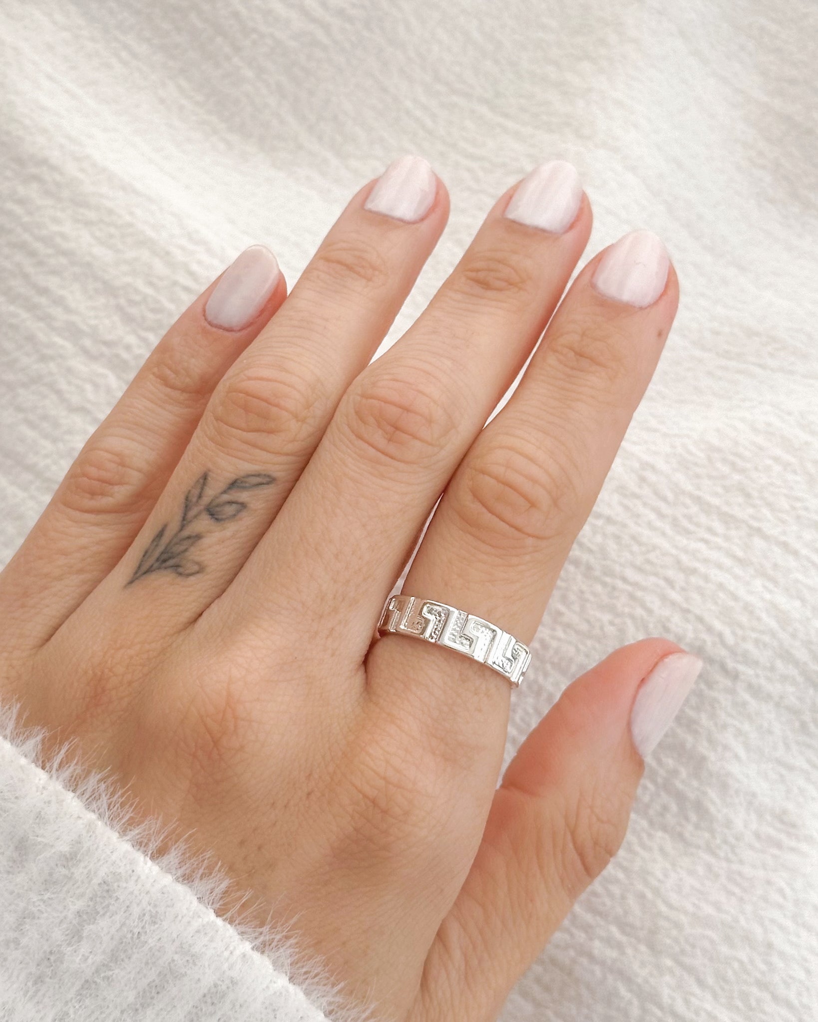 Anel Geométrico em Prata Semijoia Unissex Ajustável