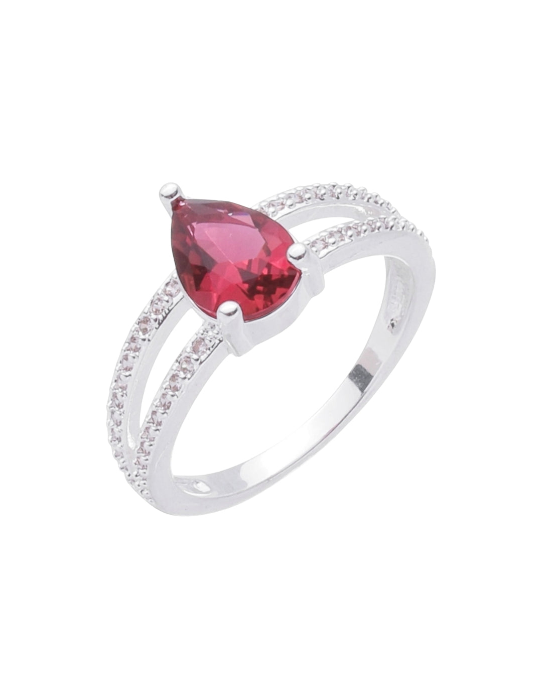 Anel Gota com Pedra Rubi Zircônias em Prata Semijoia Sofisticada