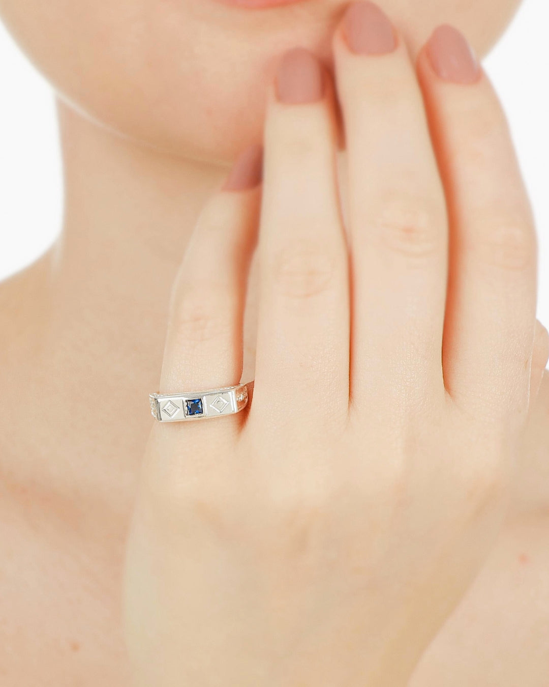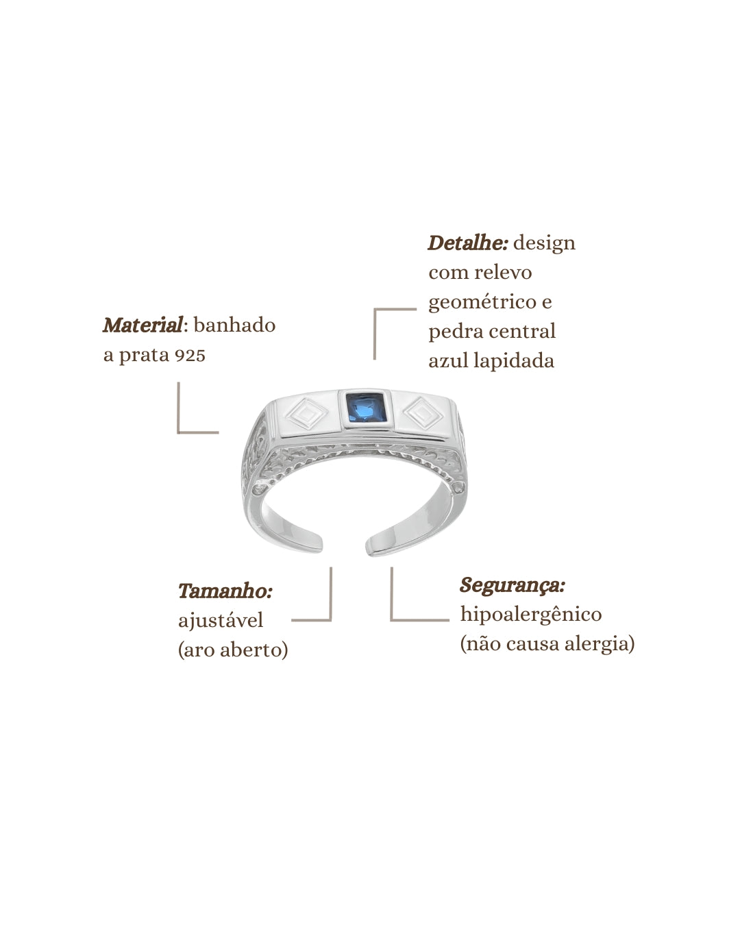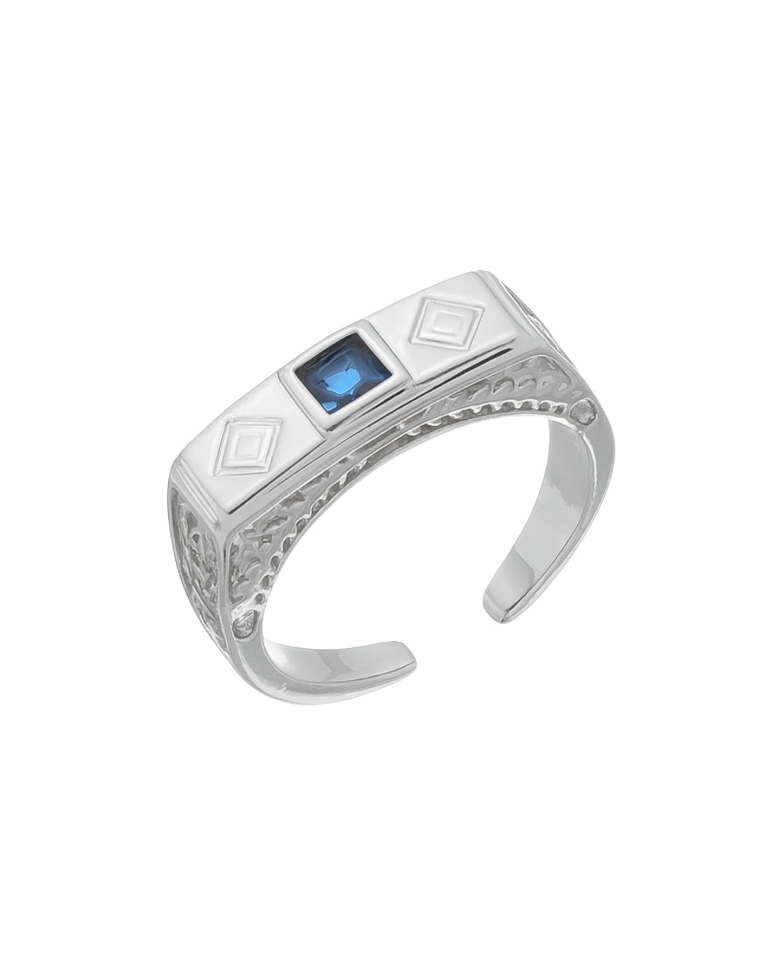 Anel Retangular com Pedra Azul em Prata Semijoia Unissex