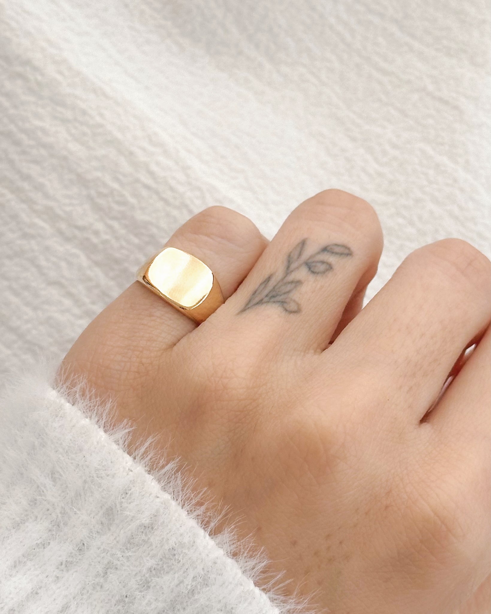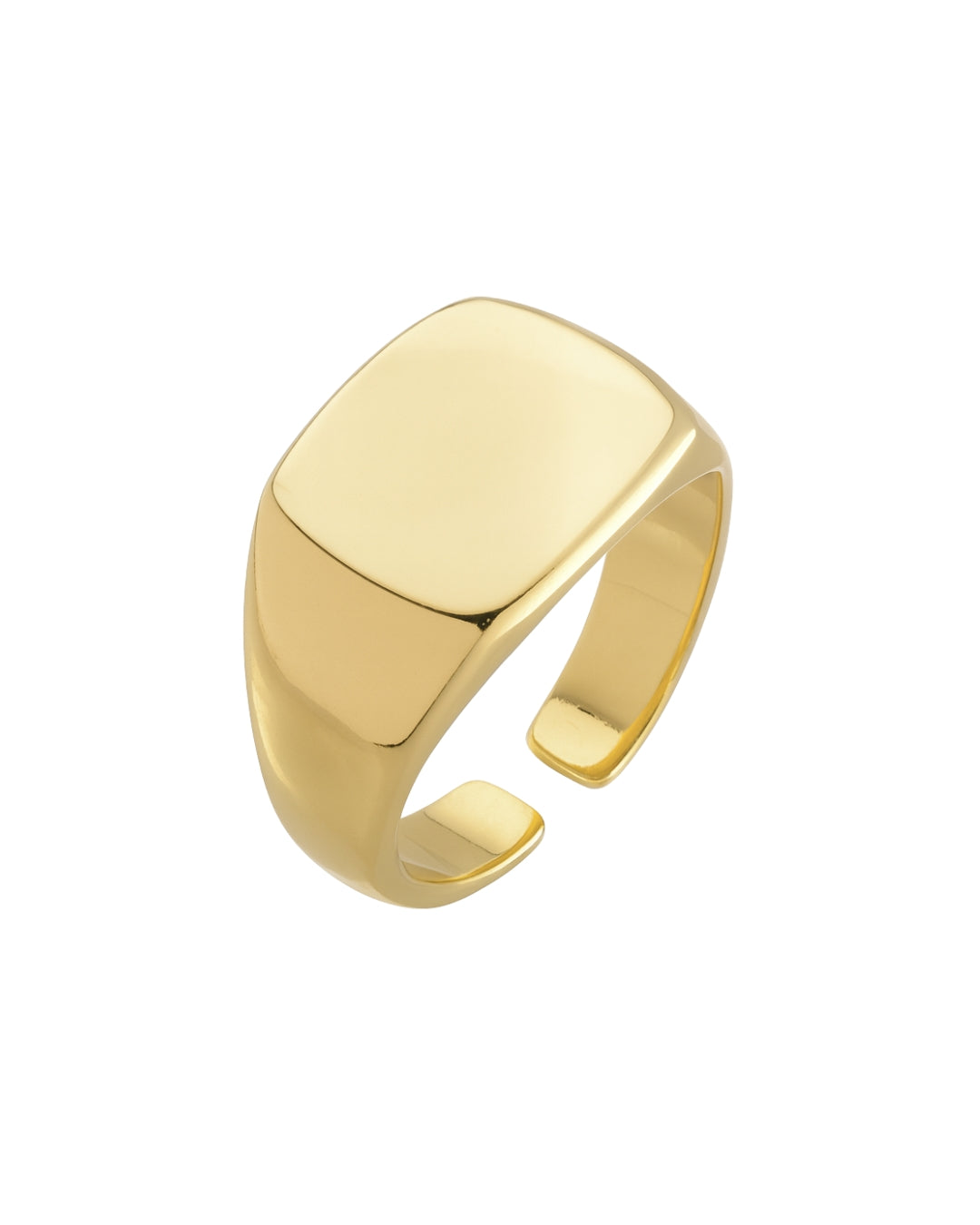 Anel Retangular Liso em Ouro Semijoia Unissex Ajustável