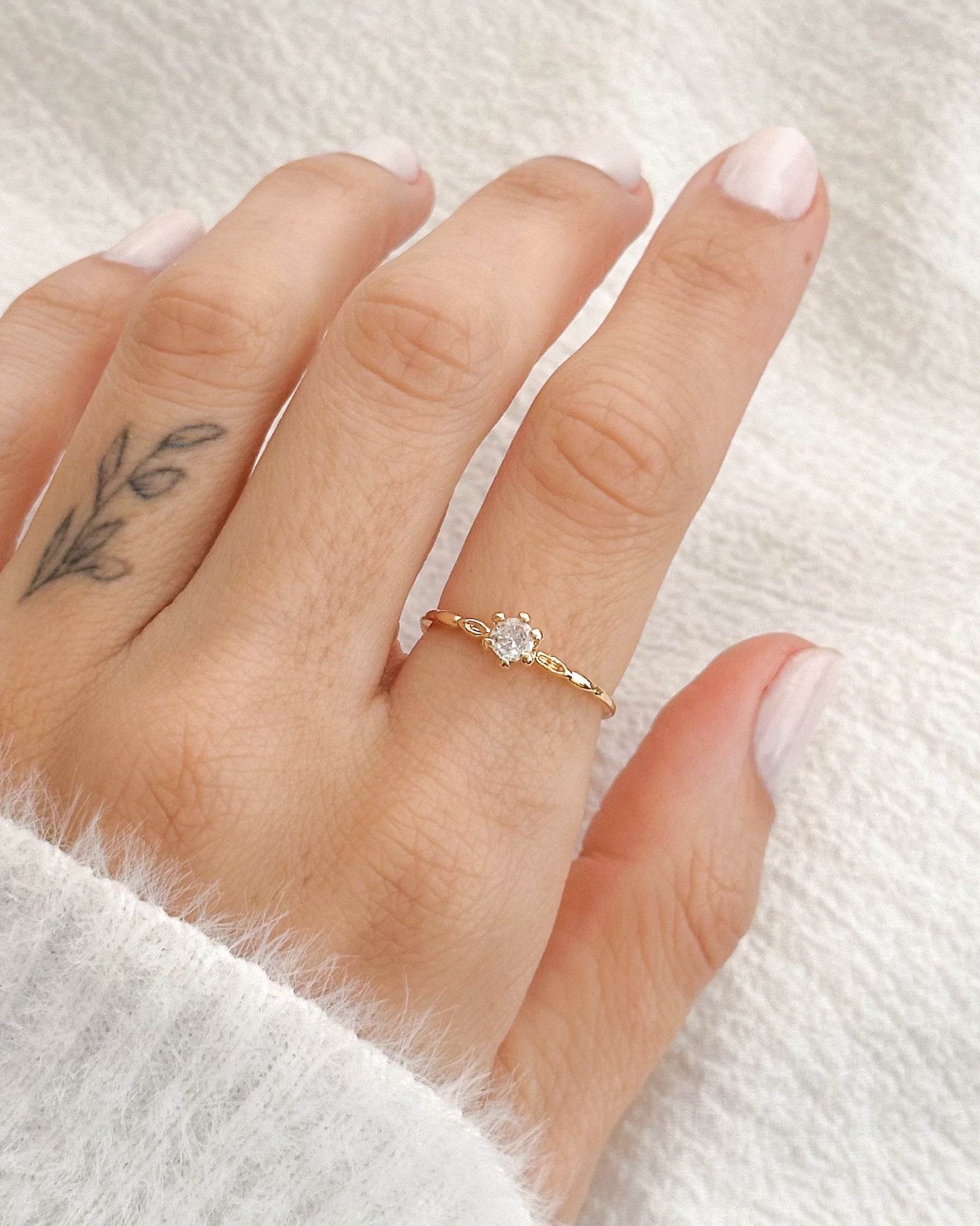 Anel Solitário com Pedra Branca em Ouro Semijoia Delicada Brilho Atemporal