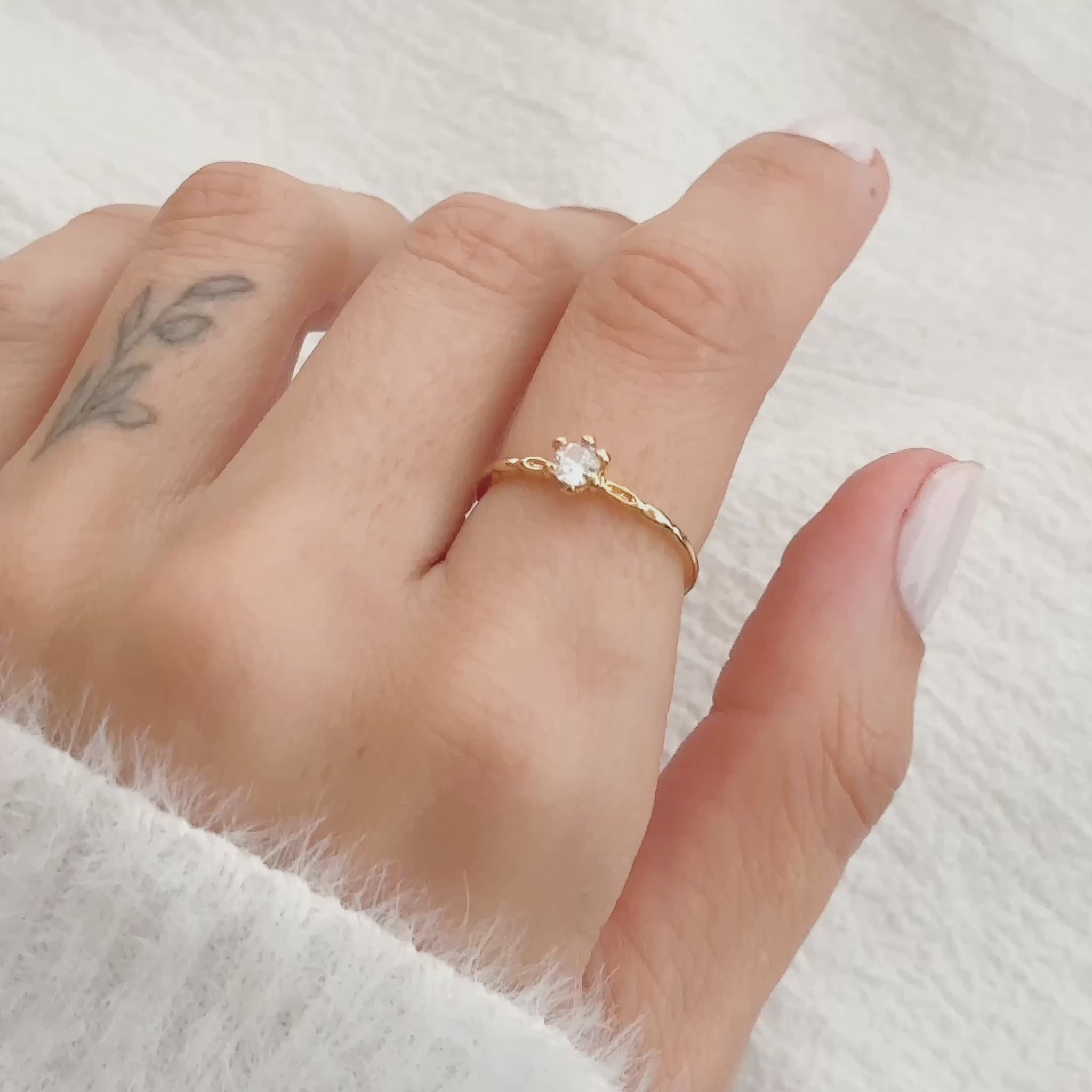 Anel Solitário com Pedra Branca em Ouro Semijoia Delicada Brilho Atemporal