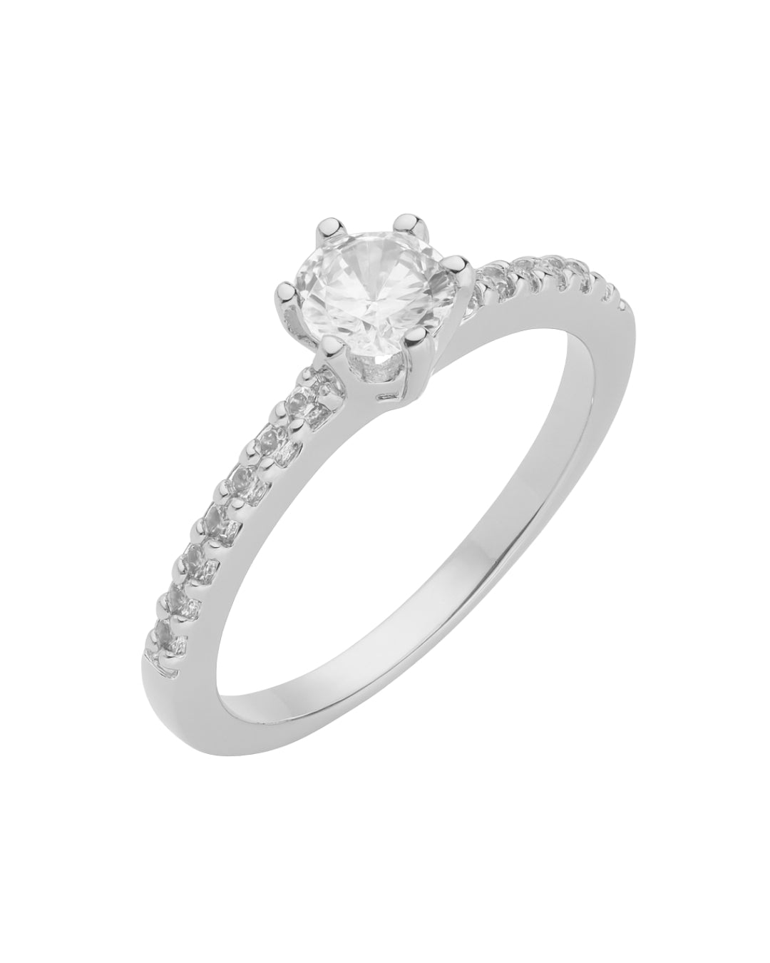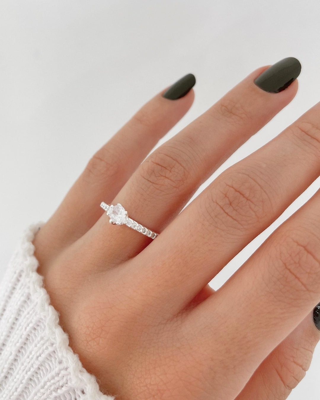 Anel Solitário Cravejado com Zircônia em Prata Semijoia Minimalista