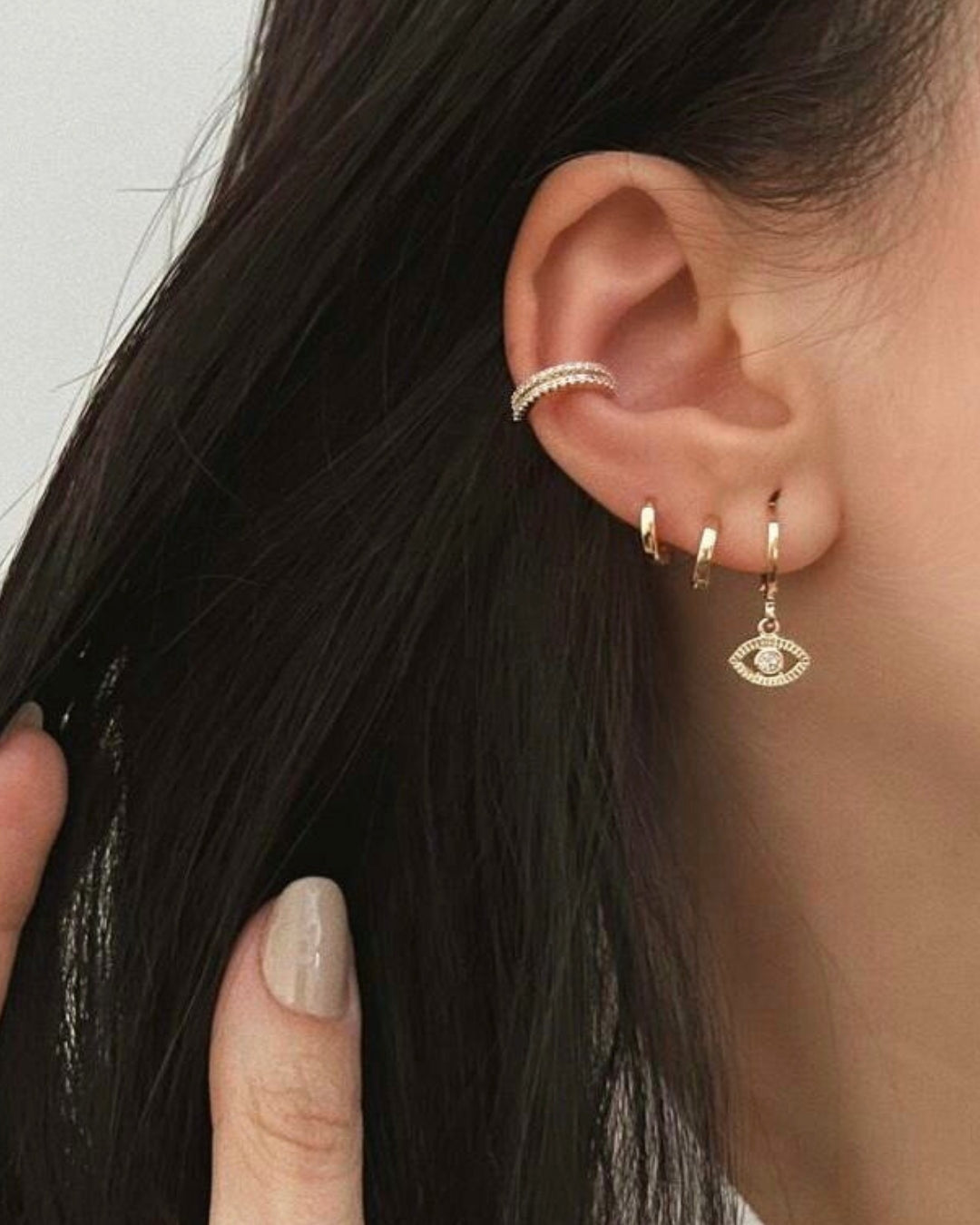 Brinco Argola Olho Grego Cravejado em Ouro Semijoia Minimalista