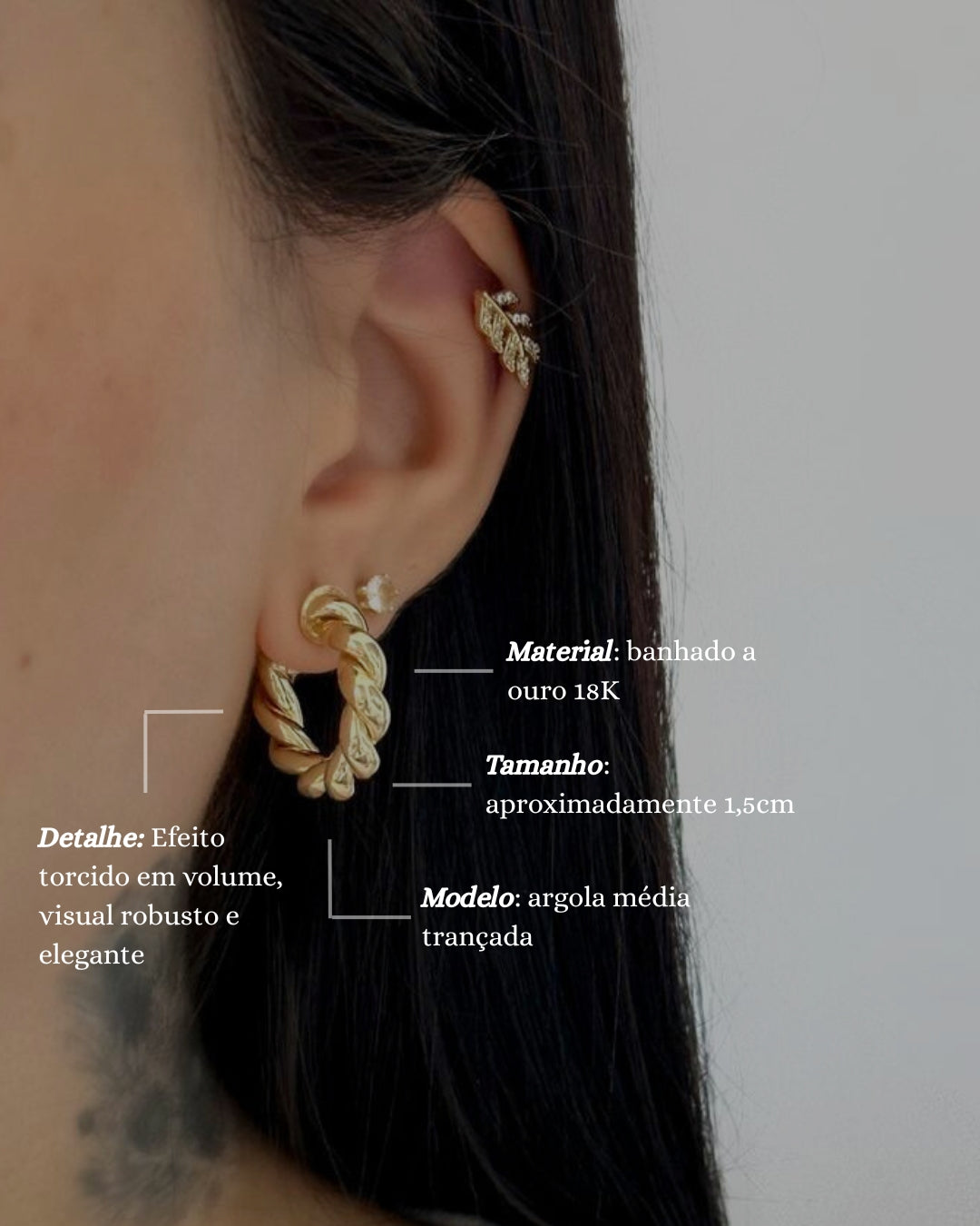 Brinco Argola Torcida em Ouro Semijoia Moderna Sofisticada