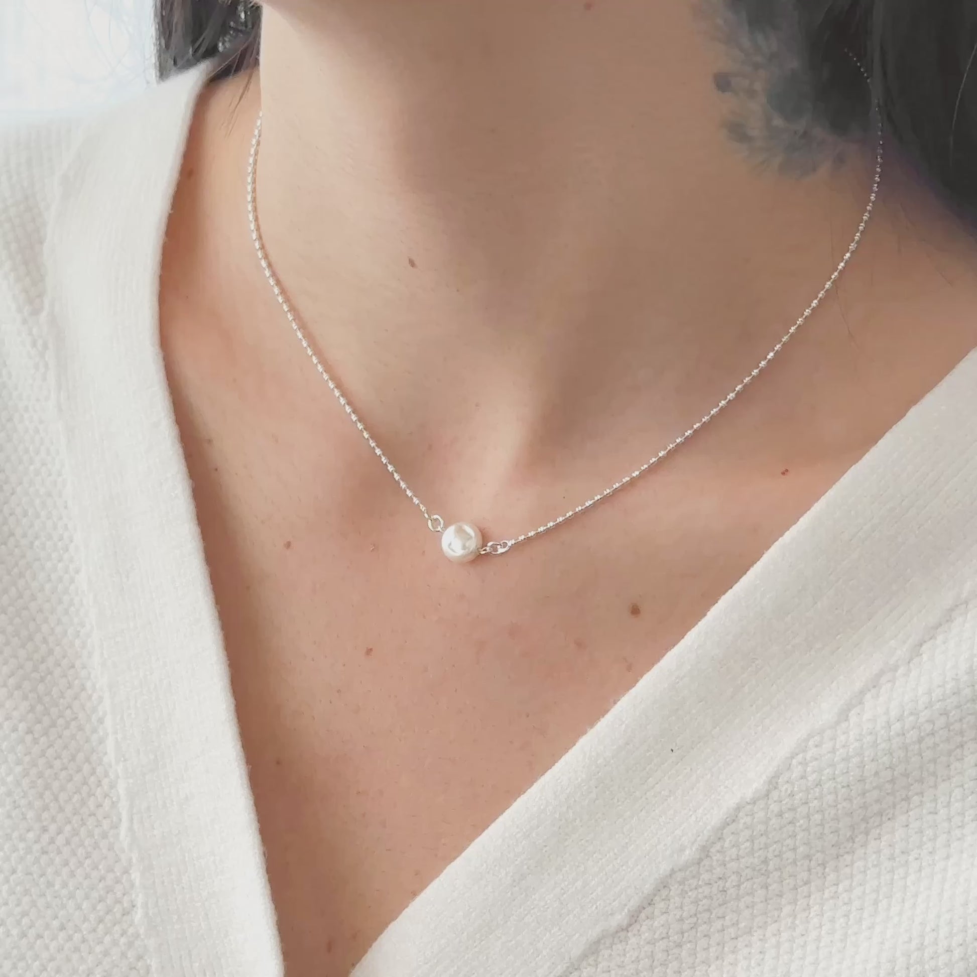 Colar com Pérola Clássica em Prata Semijoia Delicada Atemporal