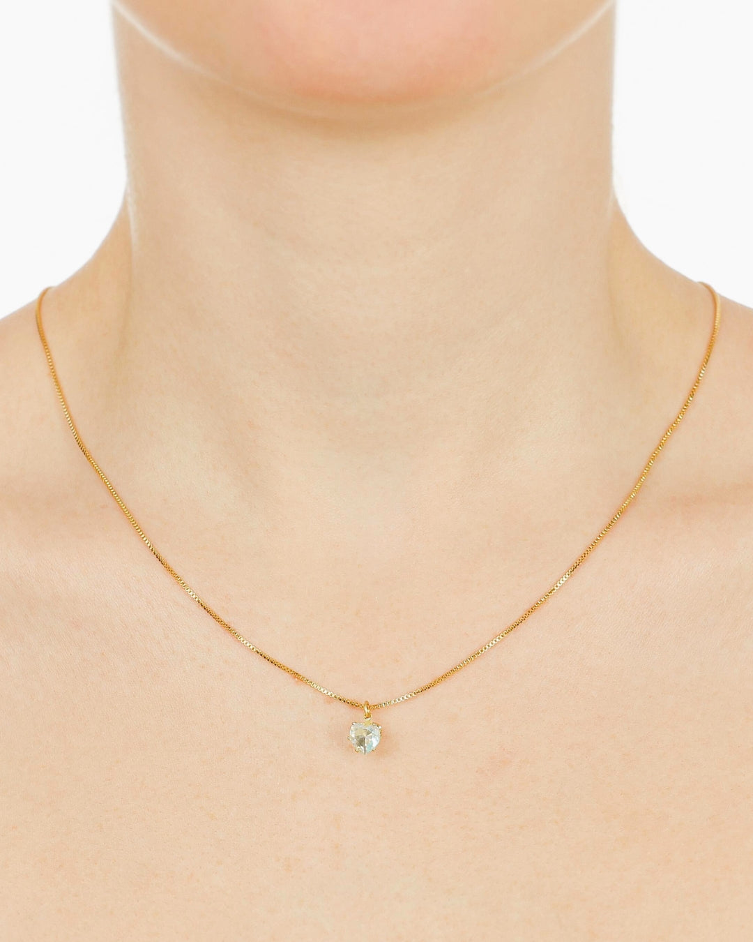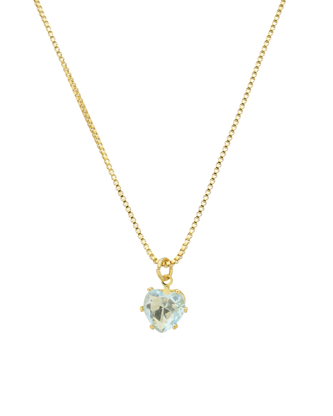 Colar Coração Azul Piscina em Ouro Pedra Facetada 10mm Semijoia Minimalista