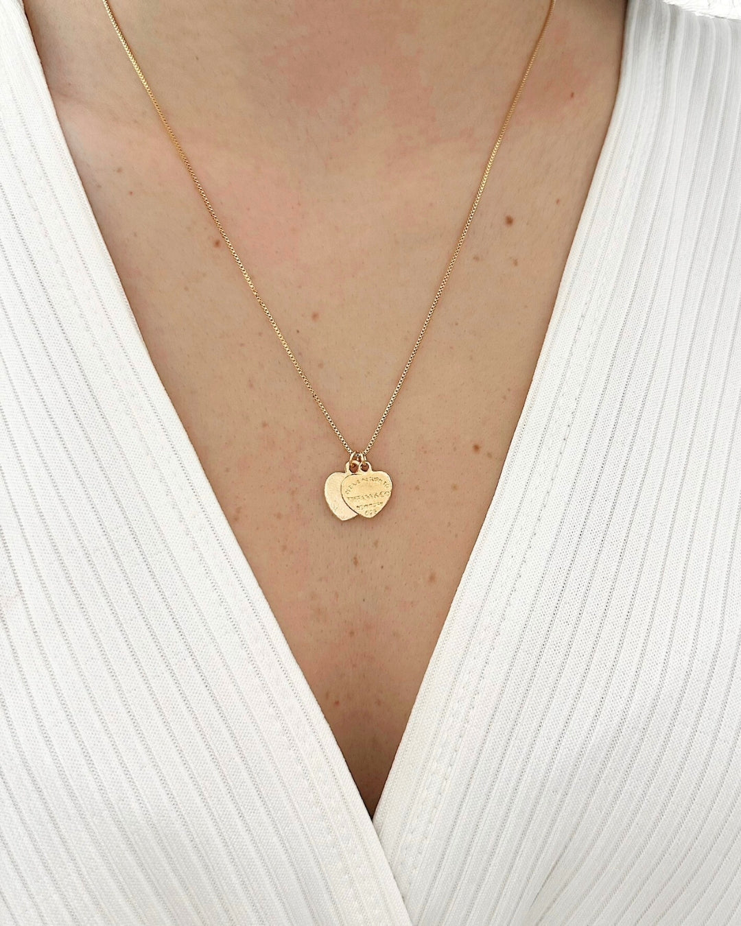 Colar Dois Corações em Ouro Pingente Duplo Semijoia Significado Amor Conexão