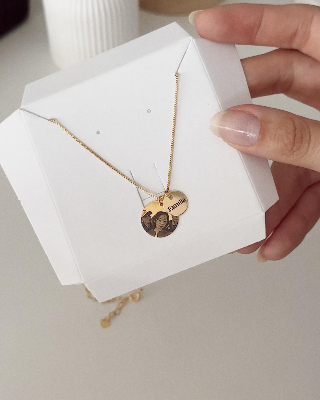 A fotografia gravada traz à joia um valor emocional incomparável, transformando lembranças em algo que se pode carregar junto ao coração. Ideal para guardar rostos, lugares ou instantes que representam amor, afeto e história pessoal, acompanhada por um pingente complementar que pode receber nomes, datas ou mensagens especiais.