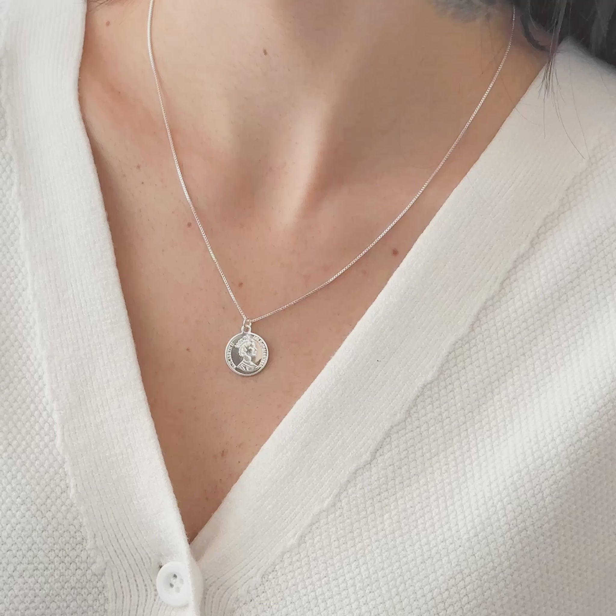 Colar Medalha Rainha Elizabeth em Prata Semijoia Minimalista
