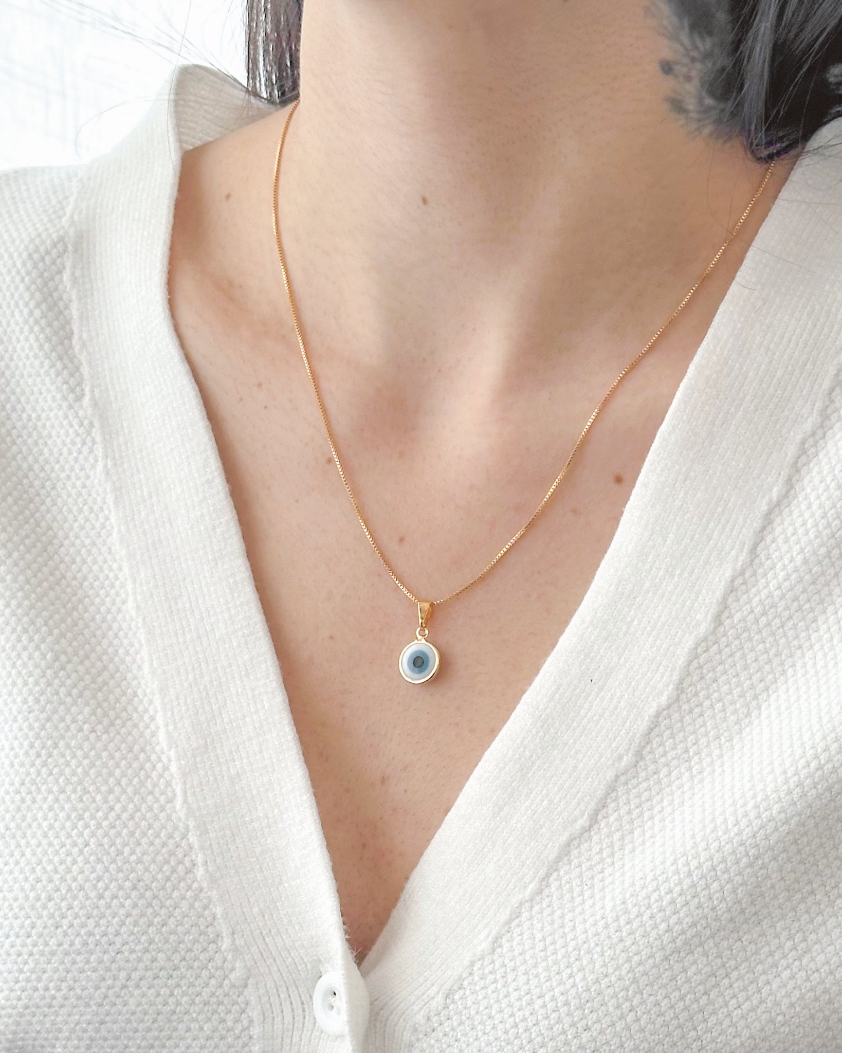 Colar Olho Grego em Ouro Amuleto de Proteção Semijoia Atemporal