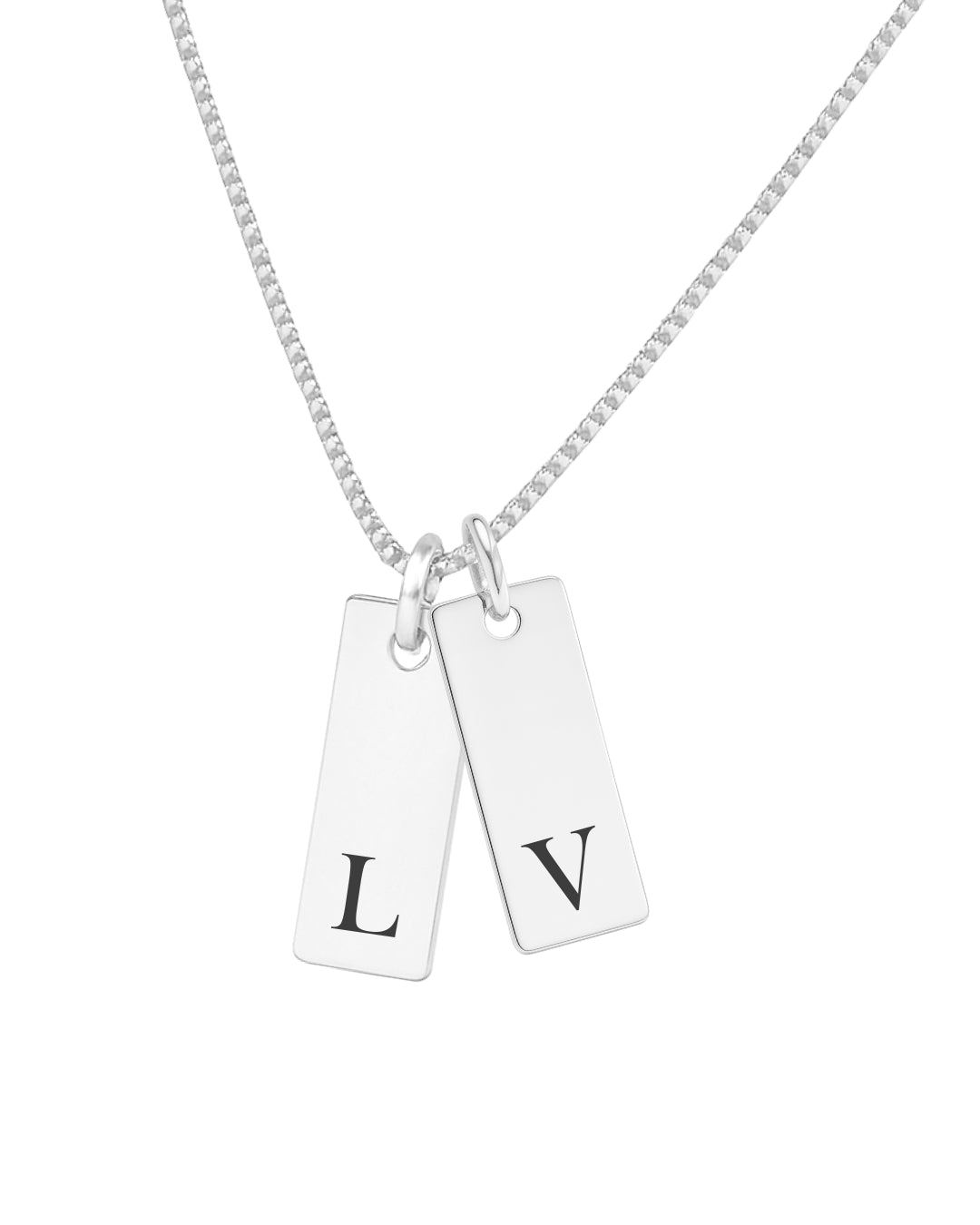Colar Placa P com Iniciais em Prata Semijoia Unissex Minimalista