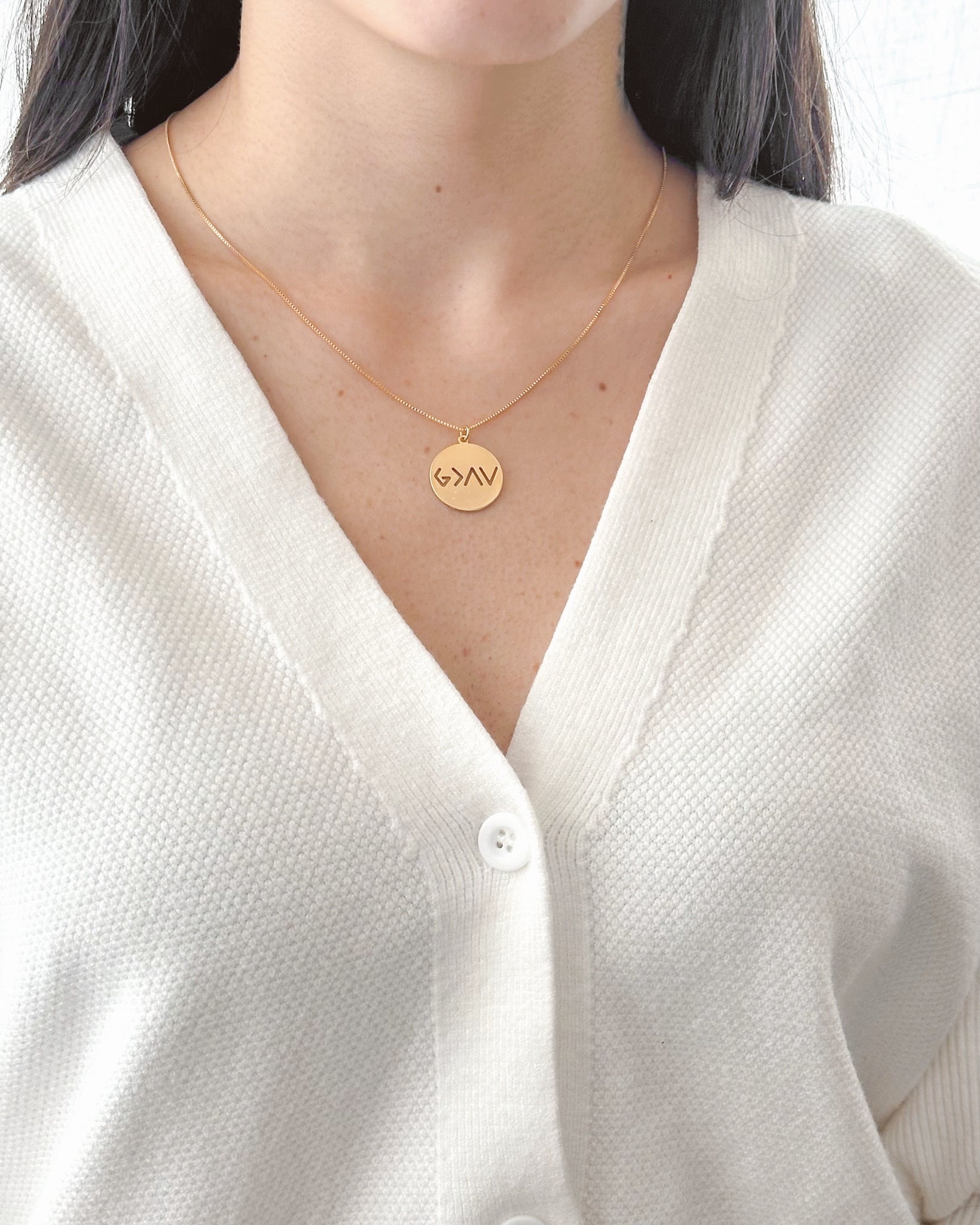 Colar Símbolos em Ouro Semijoia Símbolo Deus é Maior que Altos e Baixos