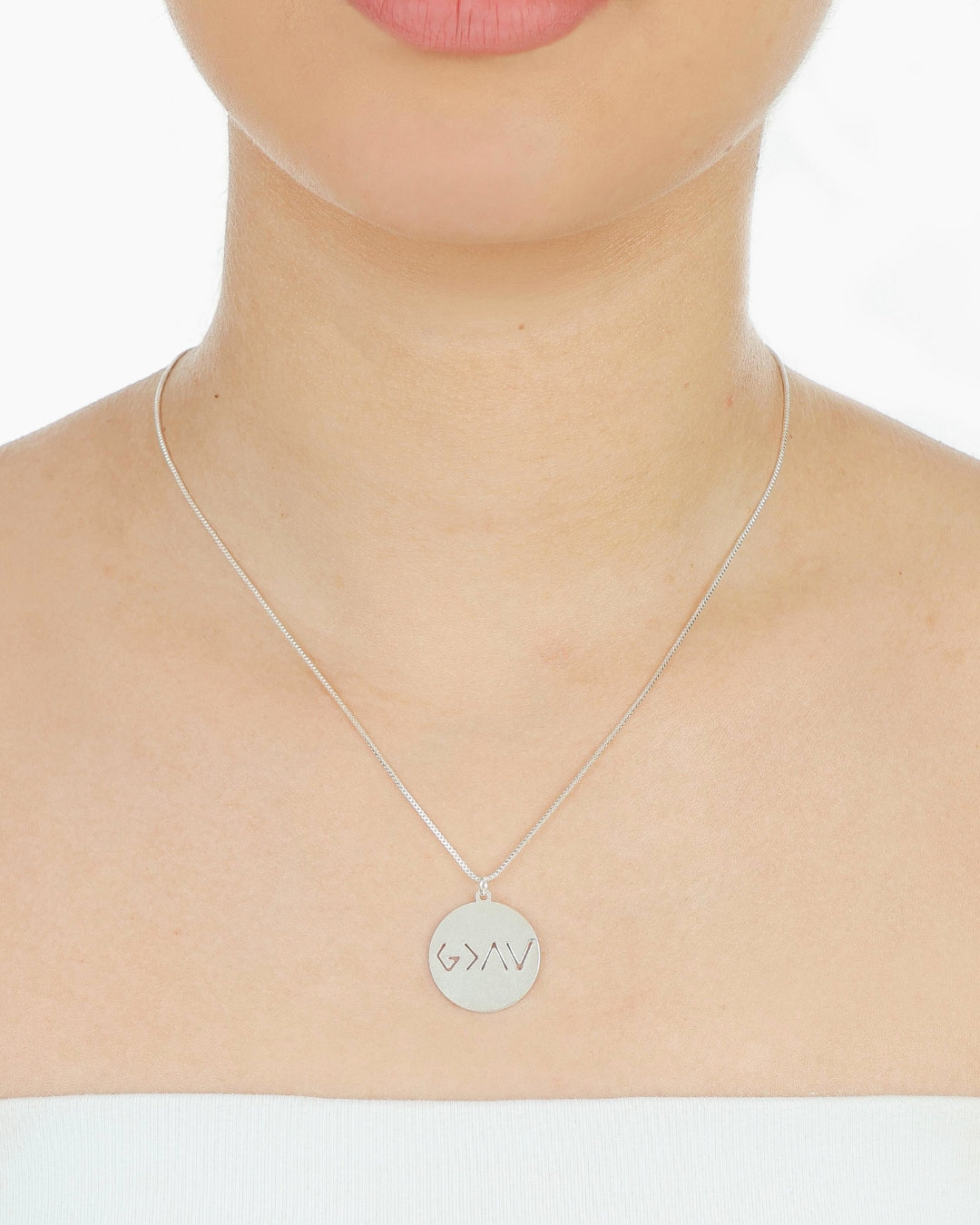 Colar Símbolos em Prata Semijoia Símbolo Deus é Maior que Altos e Baixos