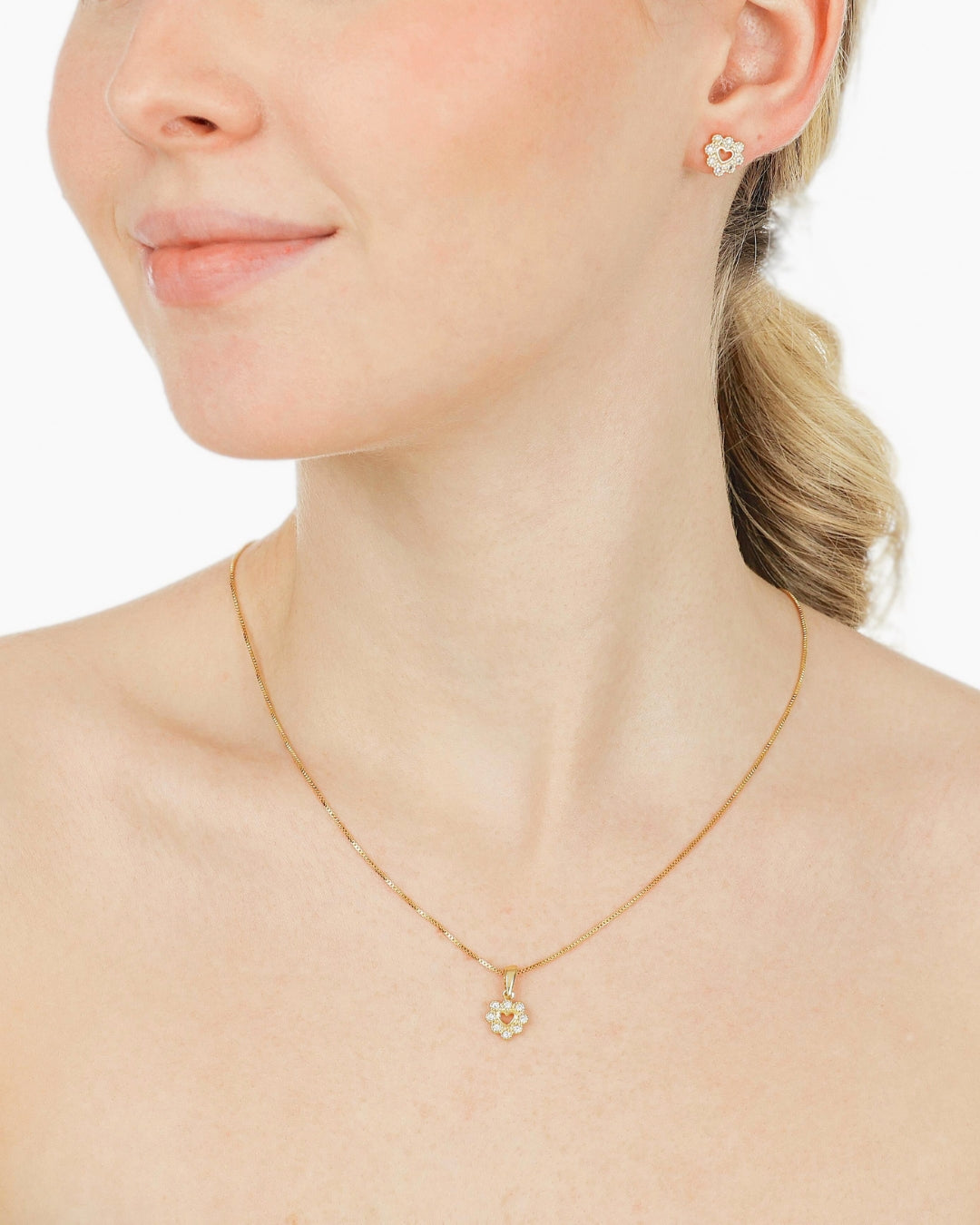 Kit Colar e Brinco Coração com Zircônias em Ouro Semijoia Delicada