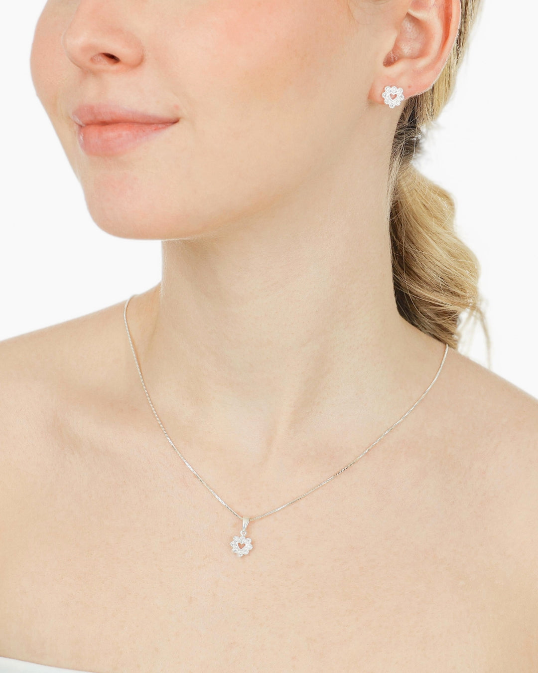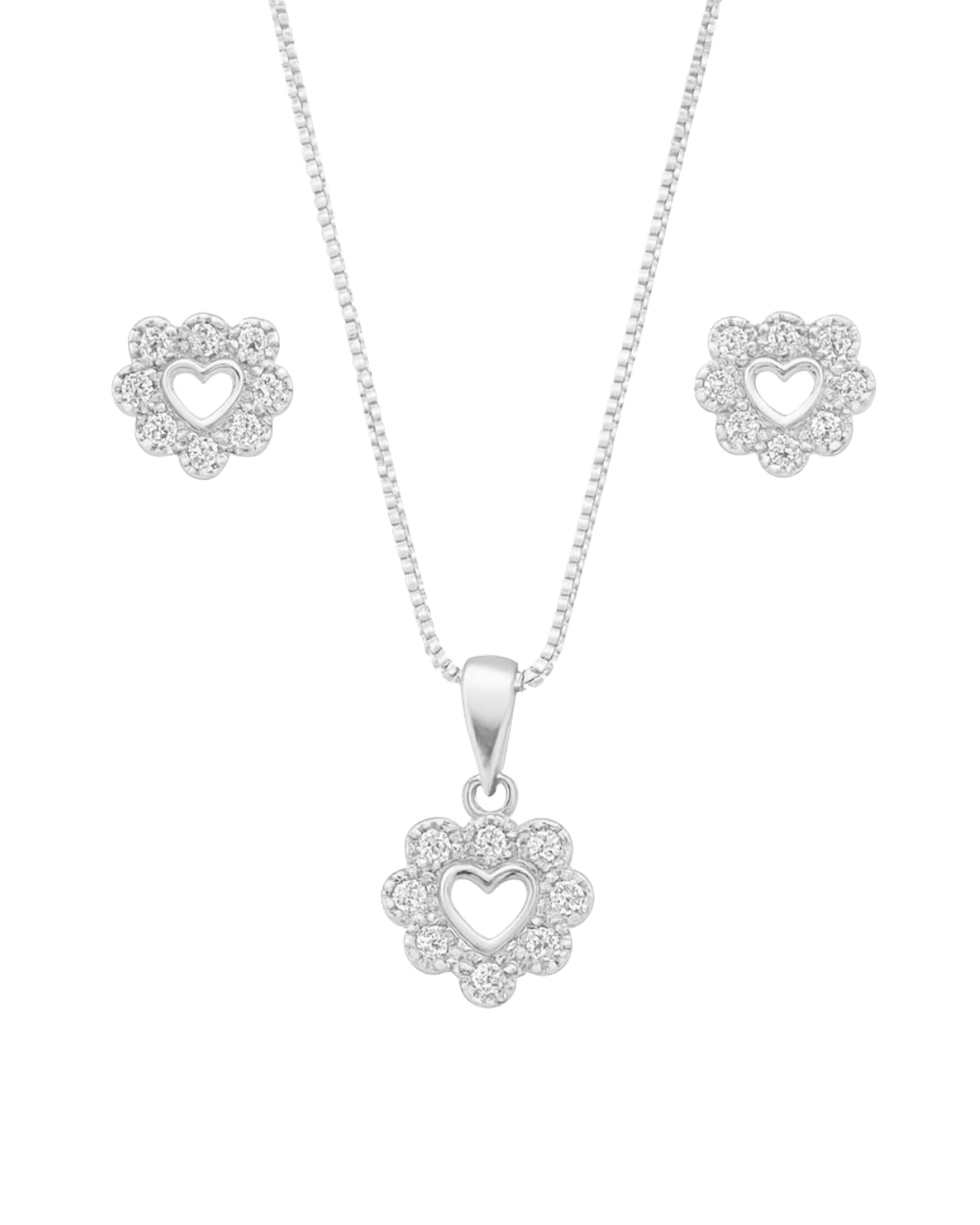 Kit Colar e Brinco Coração com Zircônias em Prata Semijoia Delicada