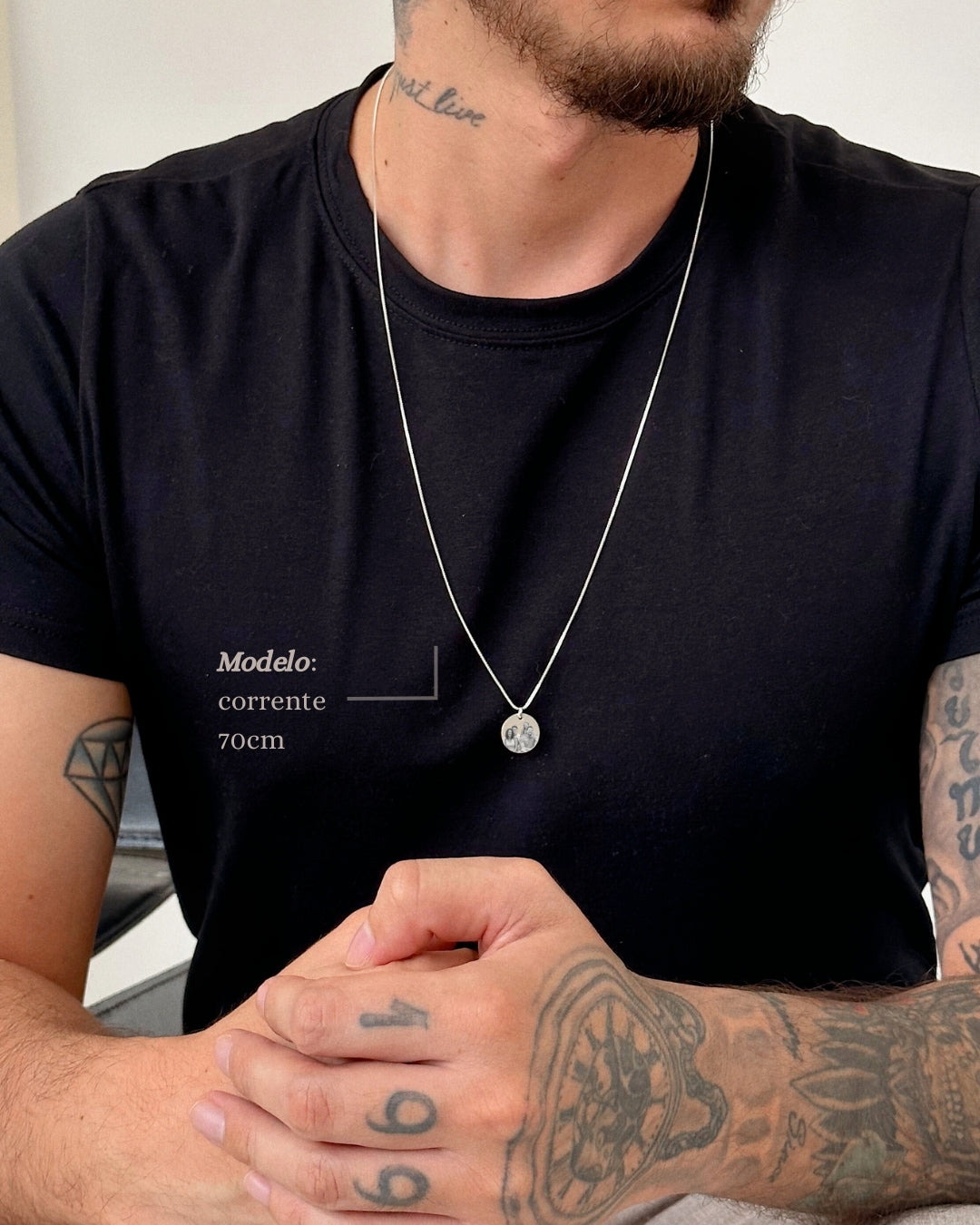 Colar Medalha Foto - Prata