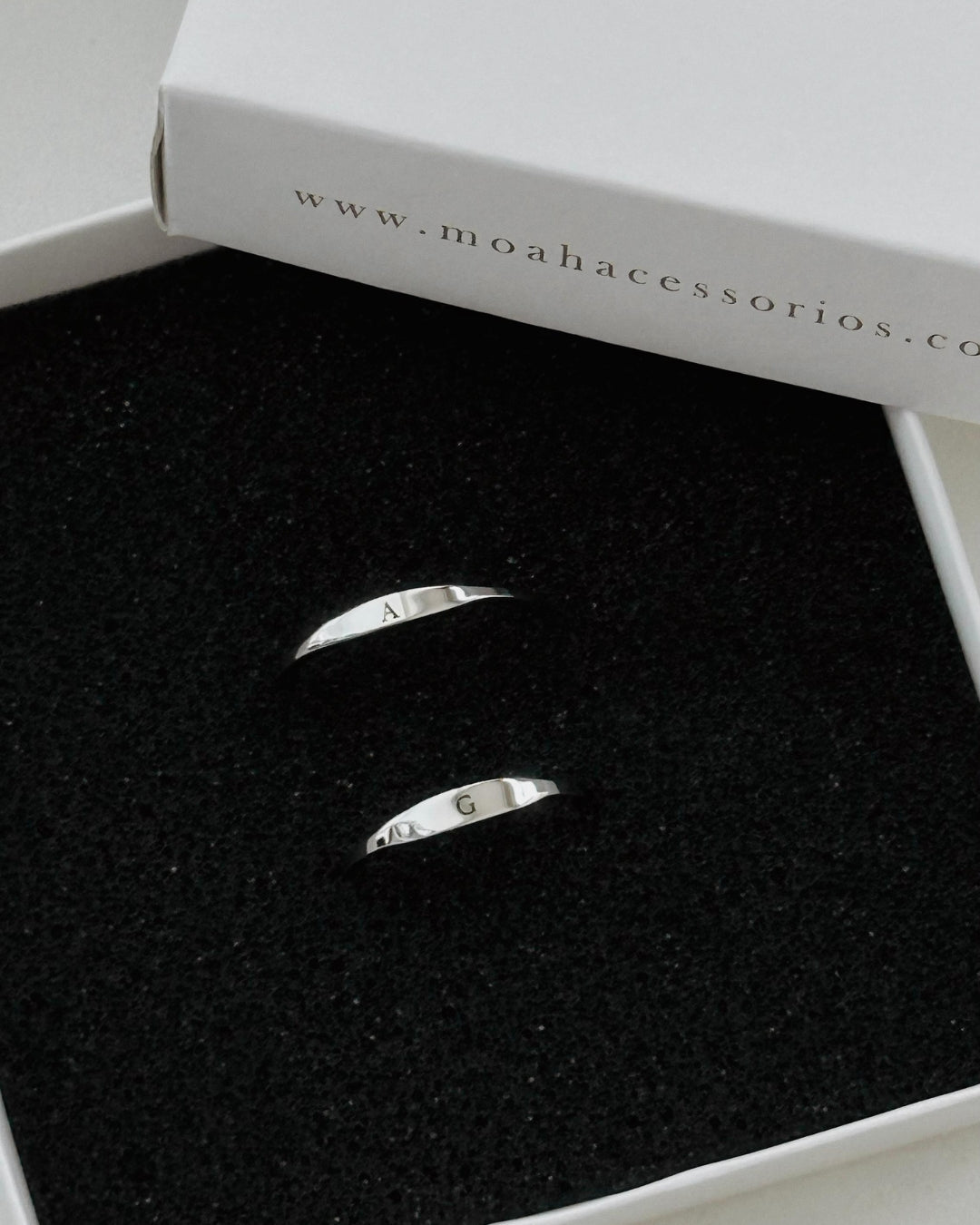 Anel Personalizado com Iniciais em Prata Aço Inox Aliança Unissex Exclusiva