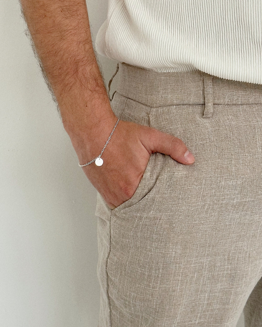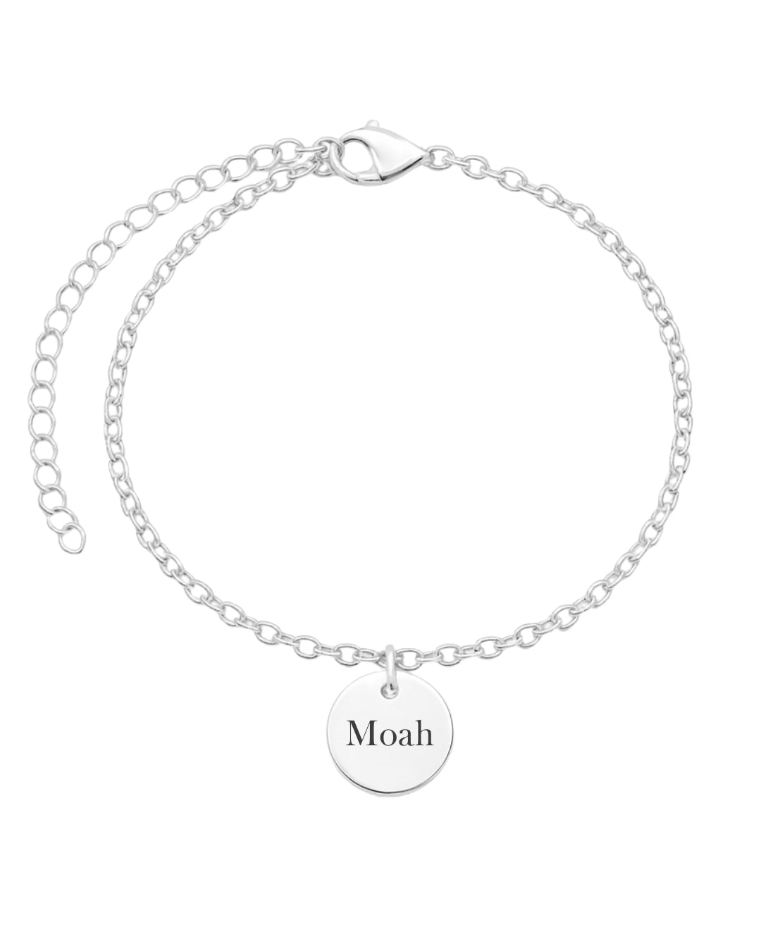 Uma pulseira delicada e sofisticada, com chapa circular que pode ser personalizada com um nome especial. O design minimalista a torna atemporal e perfeita tanto para uso diário quanto como presente especial e cheio de significado.