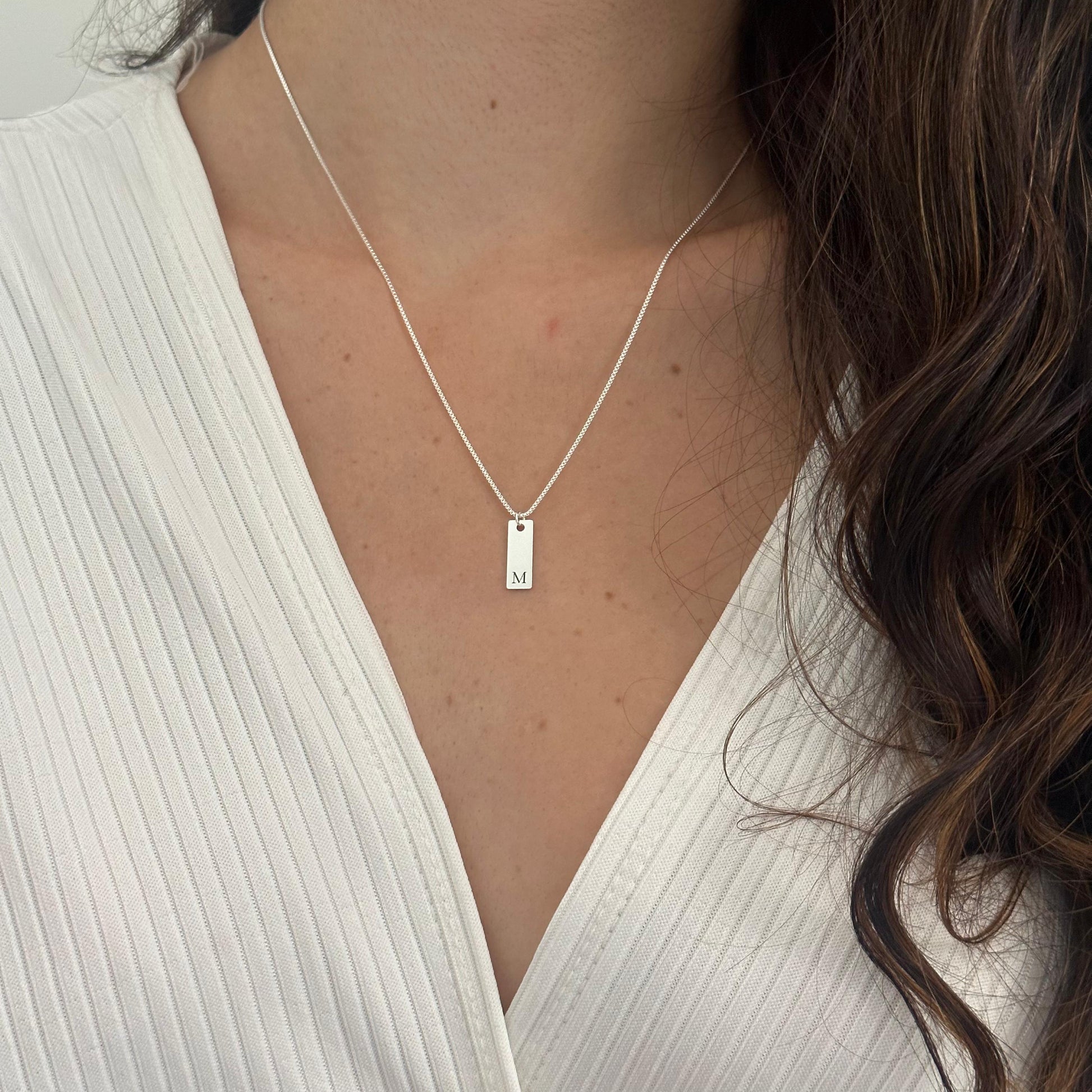 Colar Placa P com Inicial em Prata Semijoia Unissex Minimalista