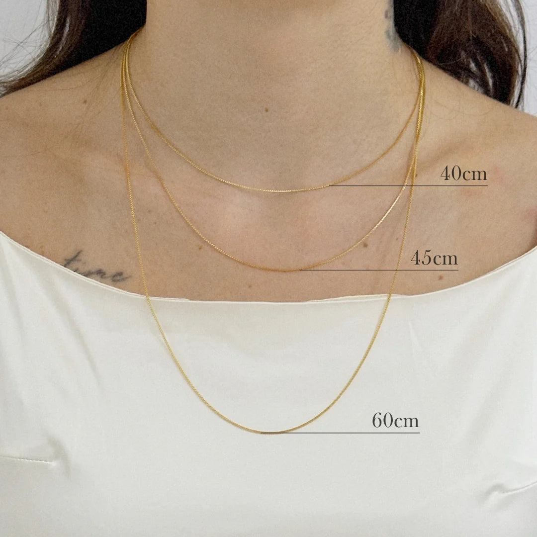 As medidas indicadas referem-se ao comprimento exato da corrente.
