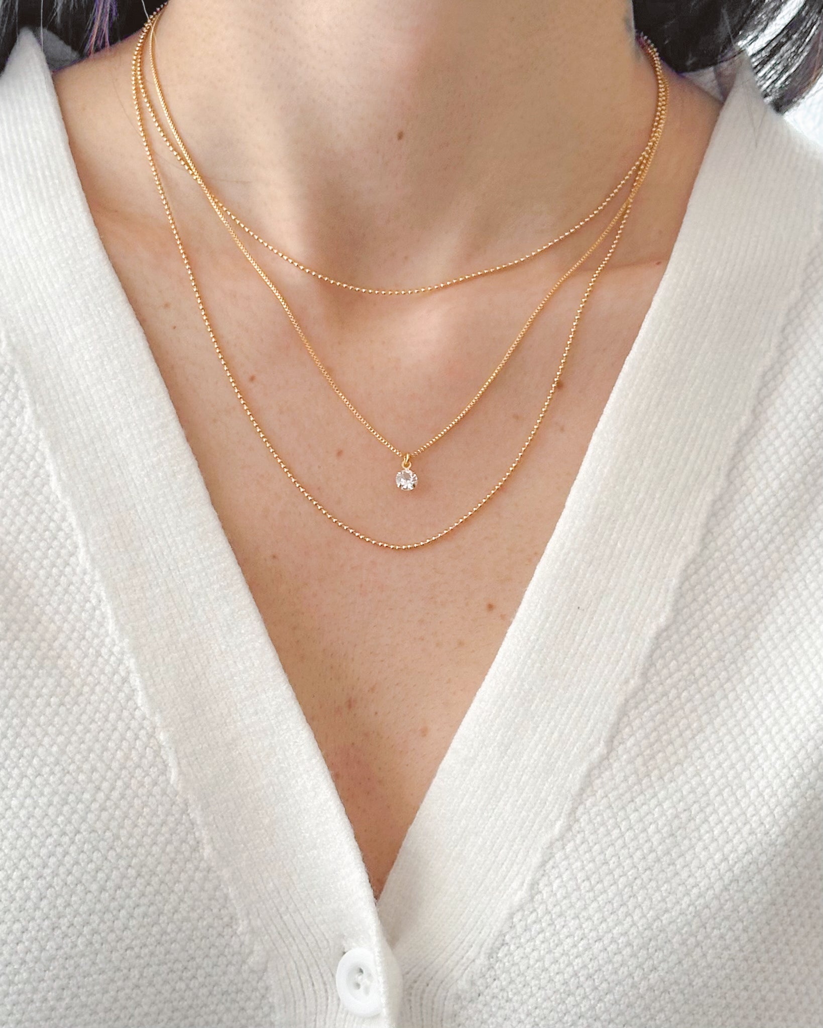 Kit 3 Colares Ponto de Luz em Ouro Semijoia Minimalista