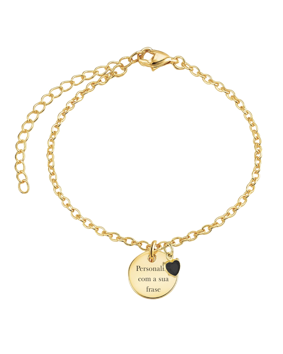 Kit Pulseira Medalha com Coração em Ouro Semijoia Unissex