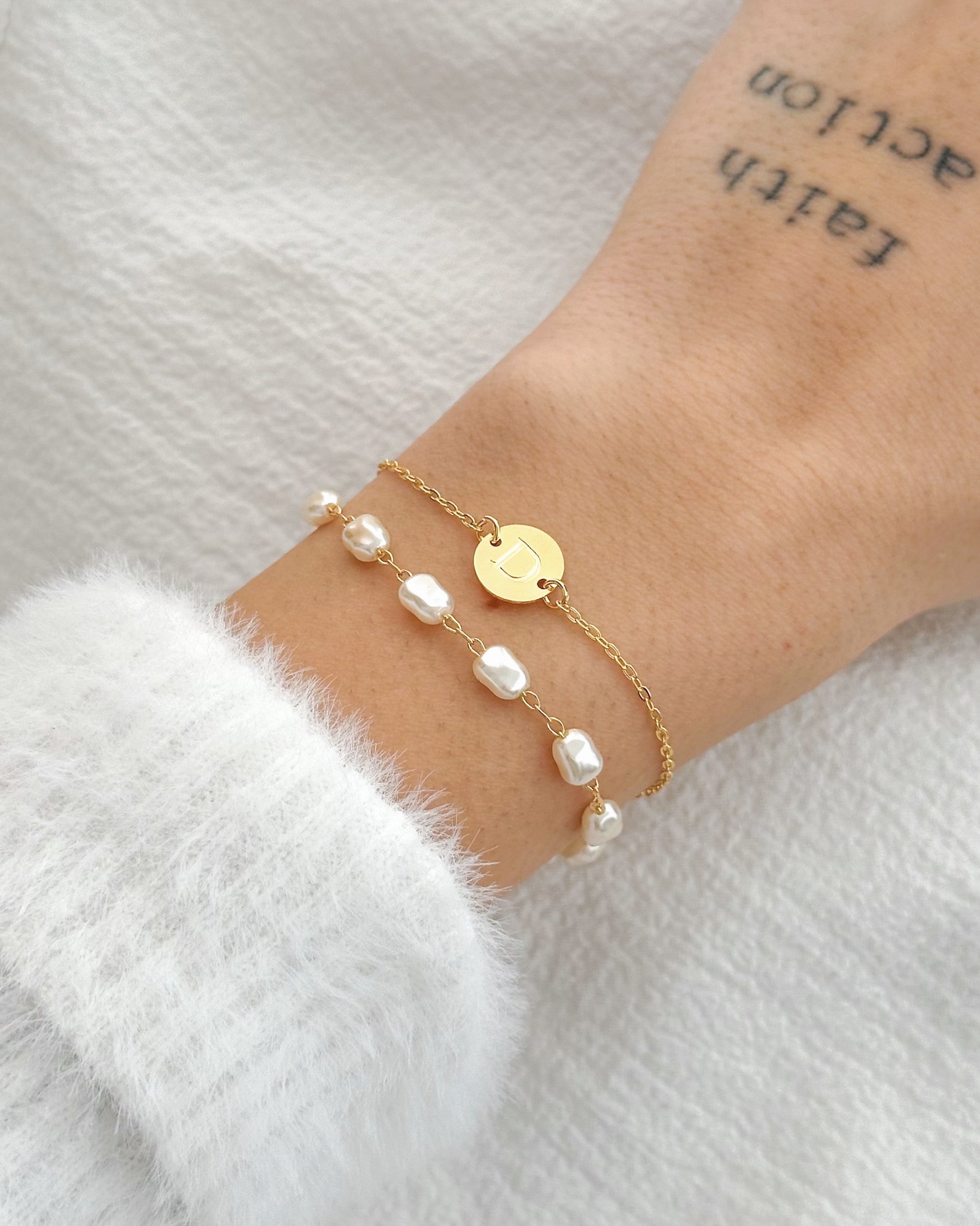 Kit Pulseira Pérolas com Inicial em Ouro Semijoia Clássica