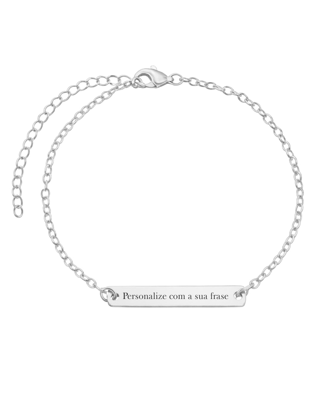 Uma pulseira delicada e sofisticada, com chapa retangular que pode ser personalizada com uma frase especial. O design minimalista a torna atemporal e perfeita tanto para uso diário quanto como presente especial e cheio de significado.